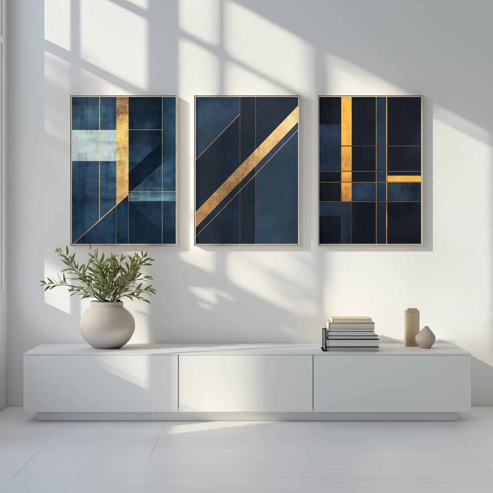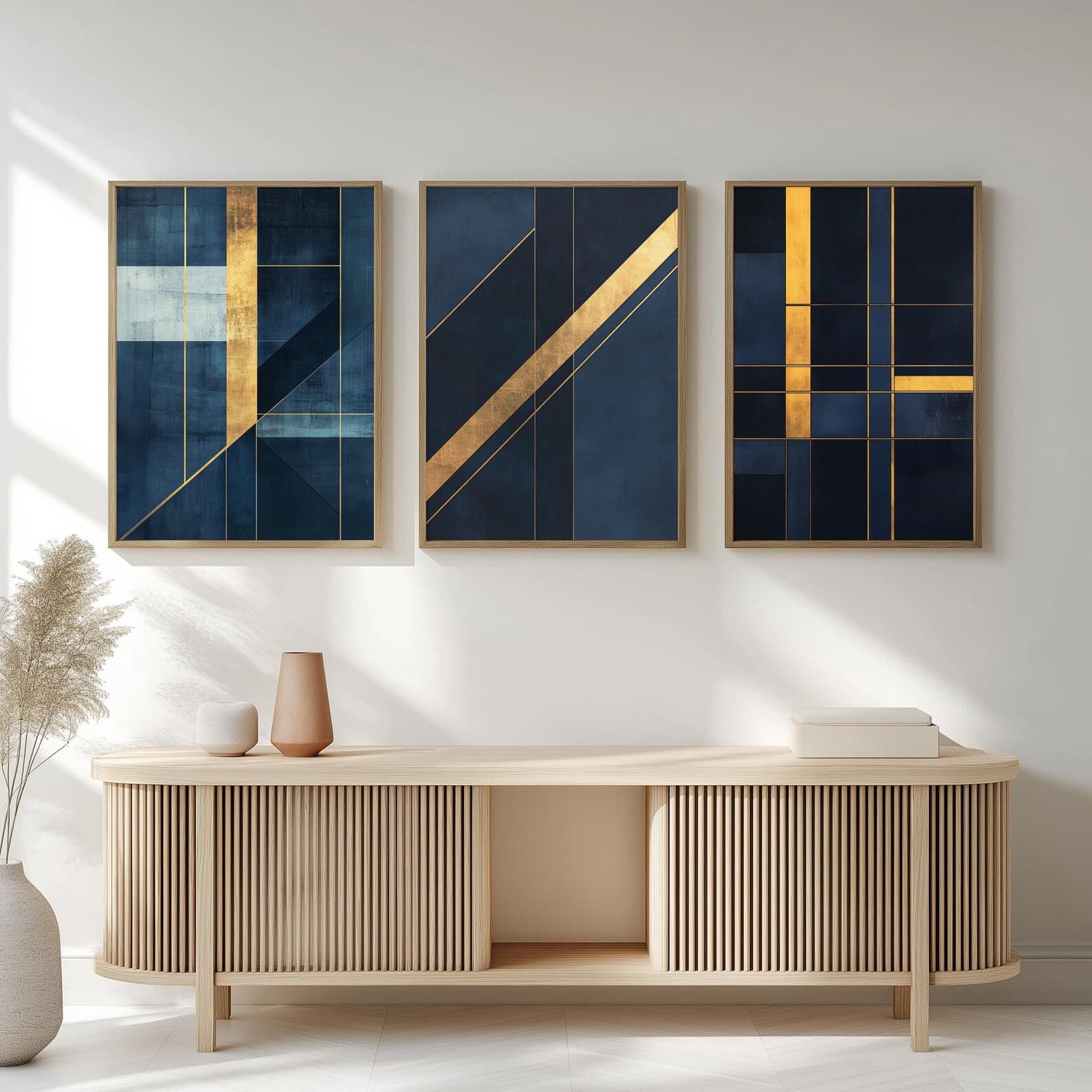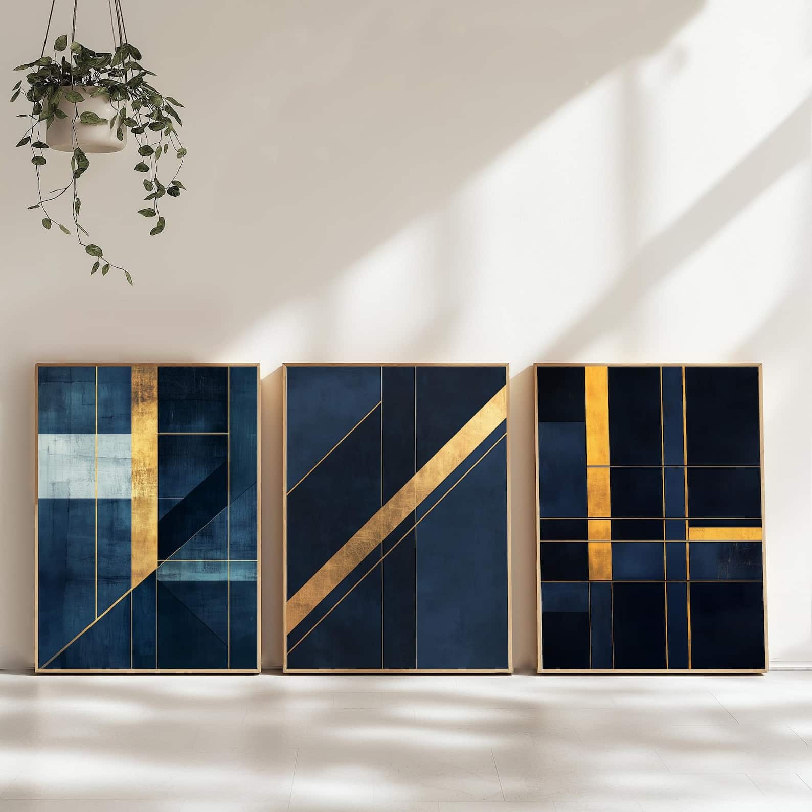 Art mural abstrait bleu marine et doré