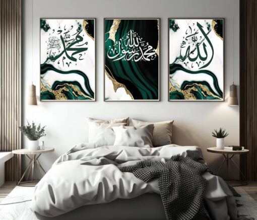Art mural islamique vert et or
