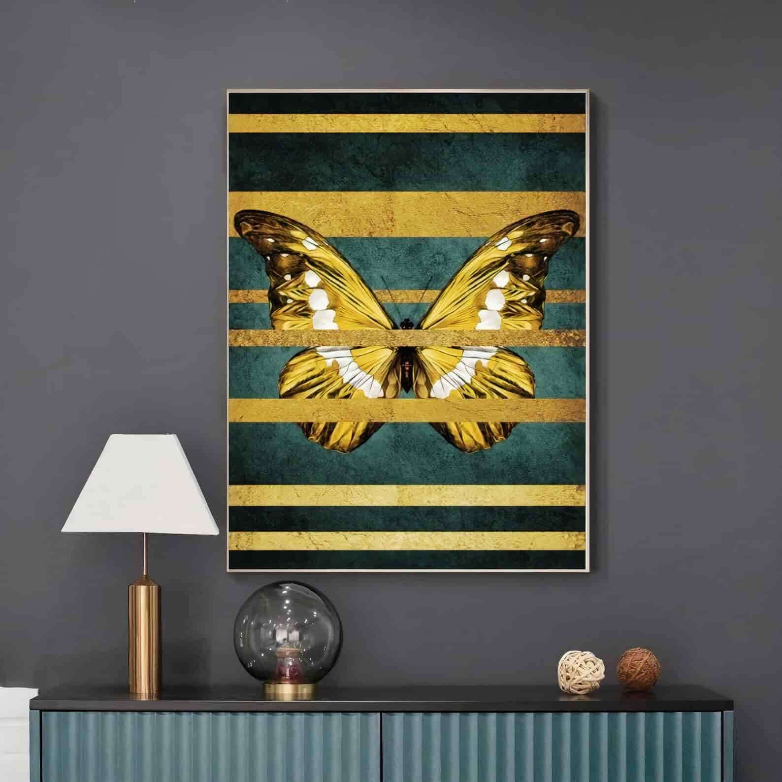 Printable Gold Green Butterfly Wall Art