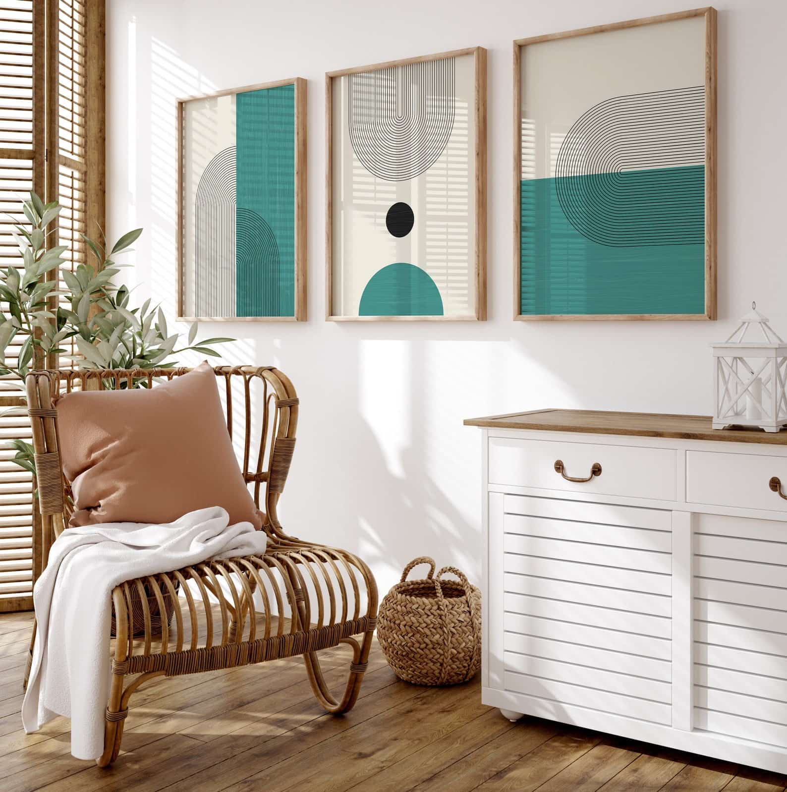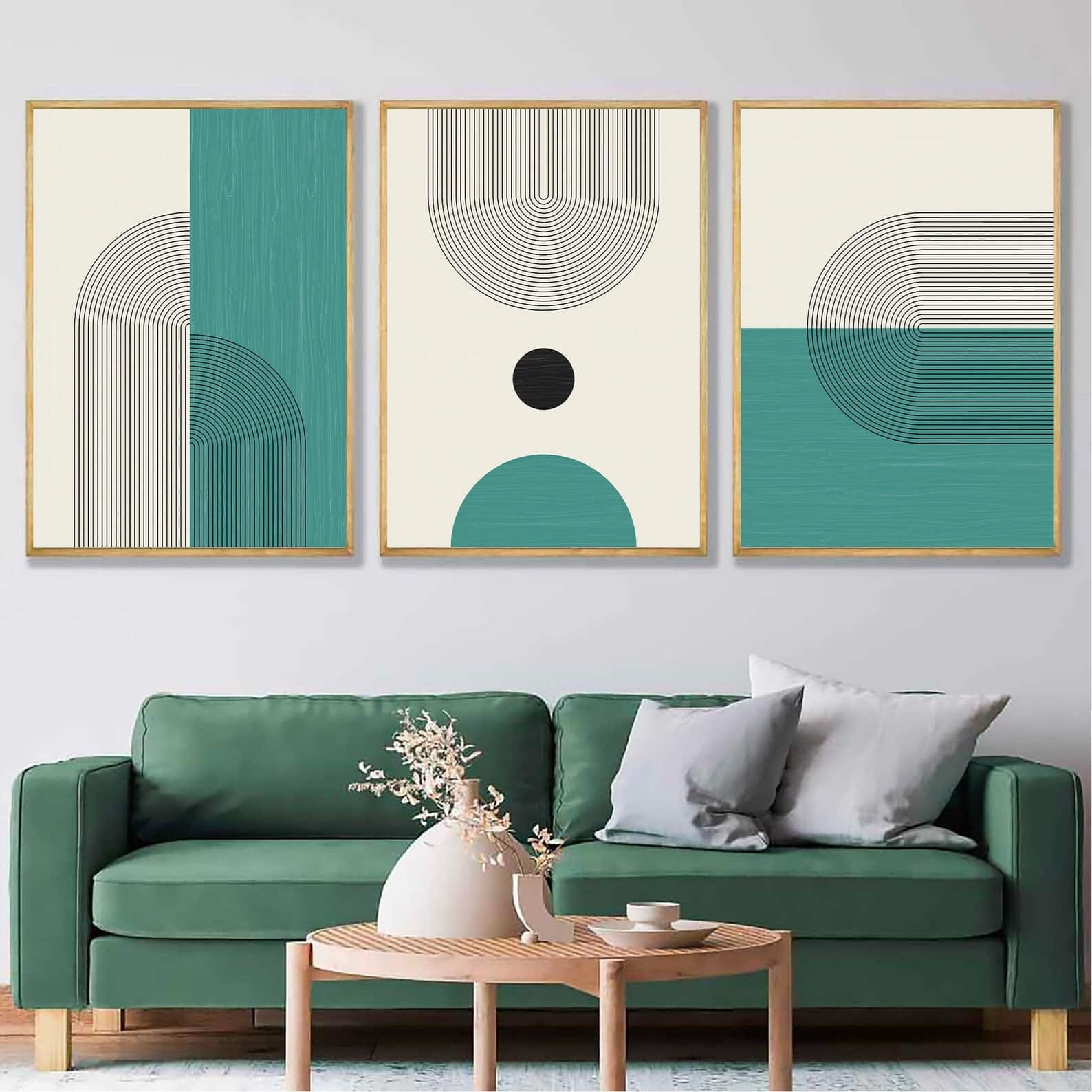 Set of 3 Prints Boho Green Wall Art